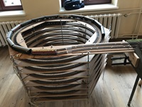 Die Anlage war früher Bestandteil der kompletten Saxonia-Analage. Diese war seit mehr als 28 Jahren bei uns eingelagert. Ein Vereinsmitglied hat sich der Sache in mühevoller Heimarbeit angenommen und nun Teile wieder aufgearbeitet. Außerdem wurden zwei Gleiswendeltürme neu aufgebaut. Somit ist erstmalig nach mehr als 28 Jahren wieder ein Zugverkehr im Rundkurs möglich.