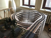Ich selber war erstaunt, dass auch nach über 40 Jahren die Züge über das alte Gleis fahren. Den Mist mit den RP25-Radsätzen machen wir sowieso nicht und somit können auf dieser alten Anlage alle unsere Fahrzeuge zum Einsatz kommen. Und dies ohne Störung. Auch die Gleiswendel wurden mit einem 12-Wagenzug problemlos gemeistert. Die Anlage wird immer zwischen Weihnachten und Silvester im Vereinshaus Radebeul aufgebaut, so es die Umstände zulassen.